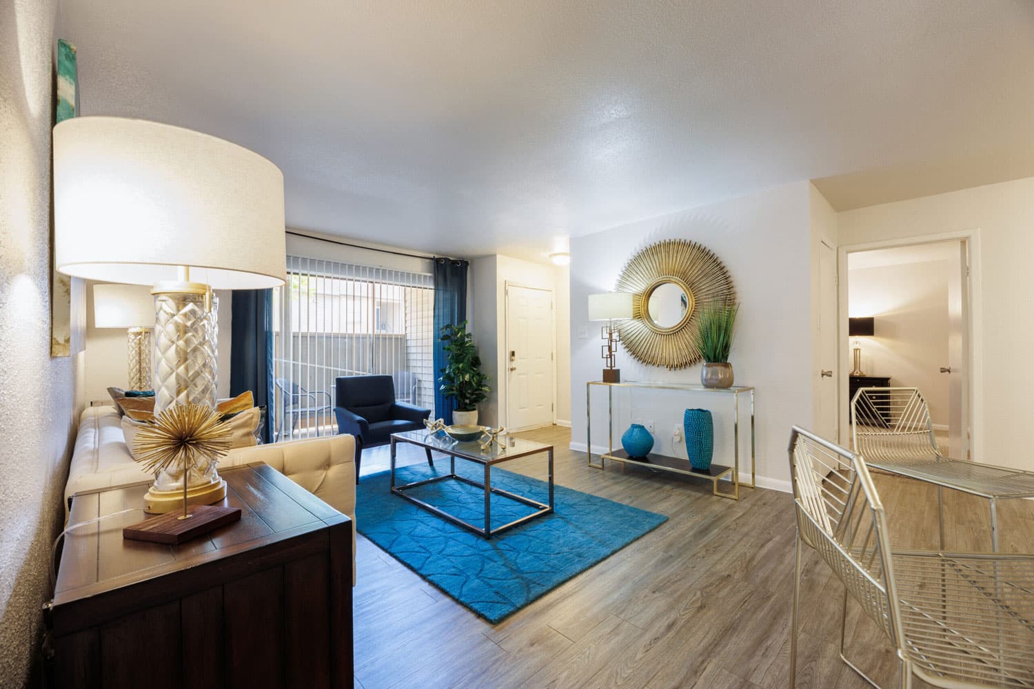 • 630 SQ FT | 1 Bed, 1 Bath – Spacious living room with private patio access